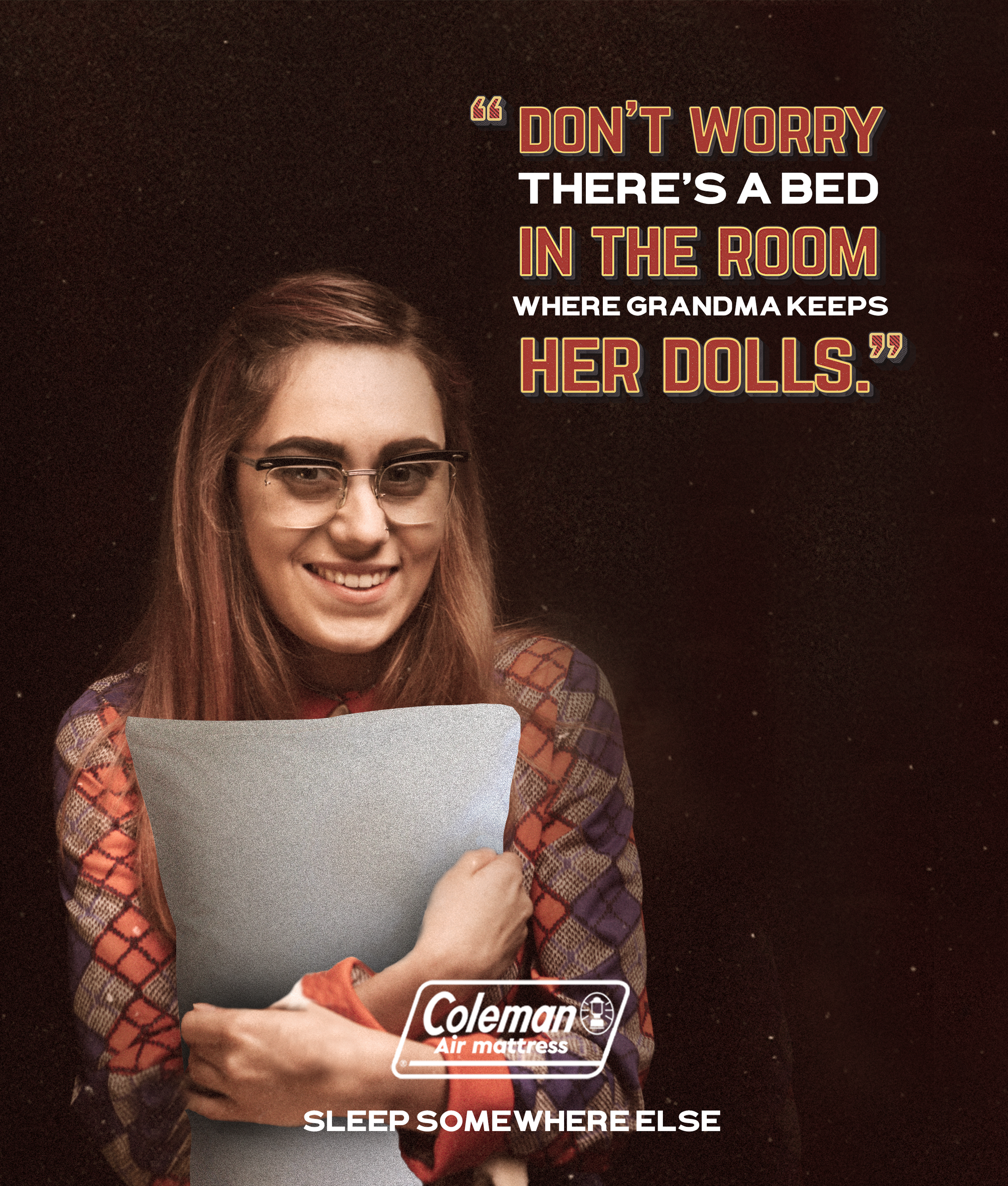This may be student work - but it’s still one of my favorites. Coleman Air Mattress: Sleep Somewhere Else.